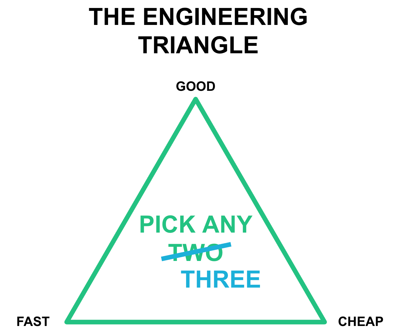 The triangle isn’t a law of nature, it’s a consequence of manual and time-consuming design processes: