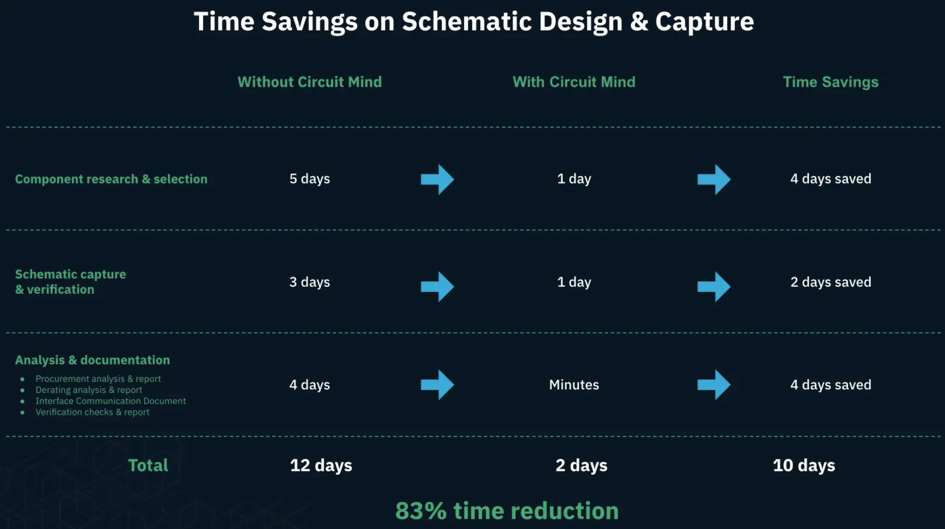 AI is compressing the amount of manual work between requirements definition and a complete schematic package, without compromising engineering rigor.